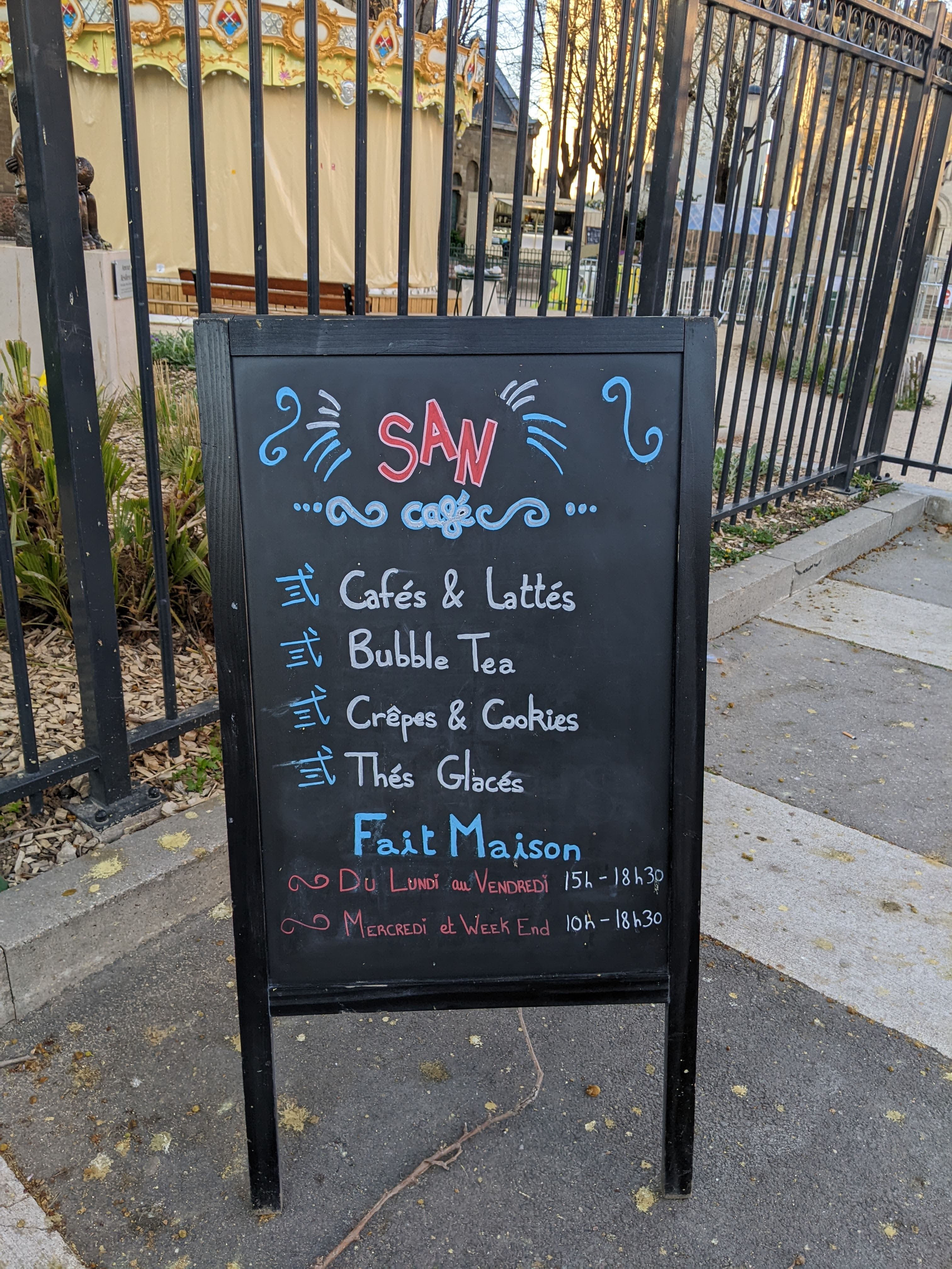 J'adore ce lieu. Je trouve que depuis qu'il y a le san café et le manège, ça donne un coté super chaleureux au parc de la mairie ! En plus tout ce qui est vendu est fait maison et c'est vraiment délicieux.