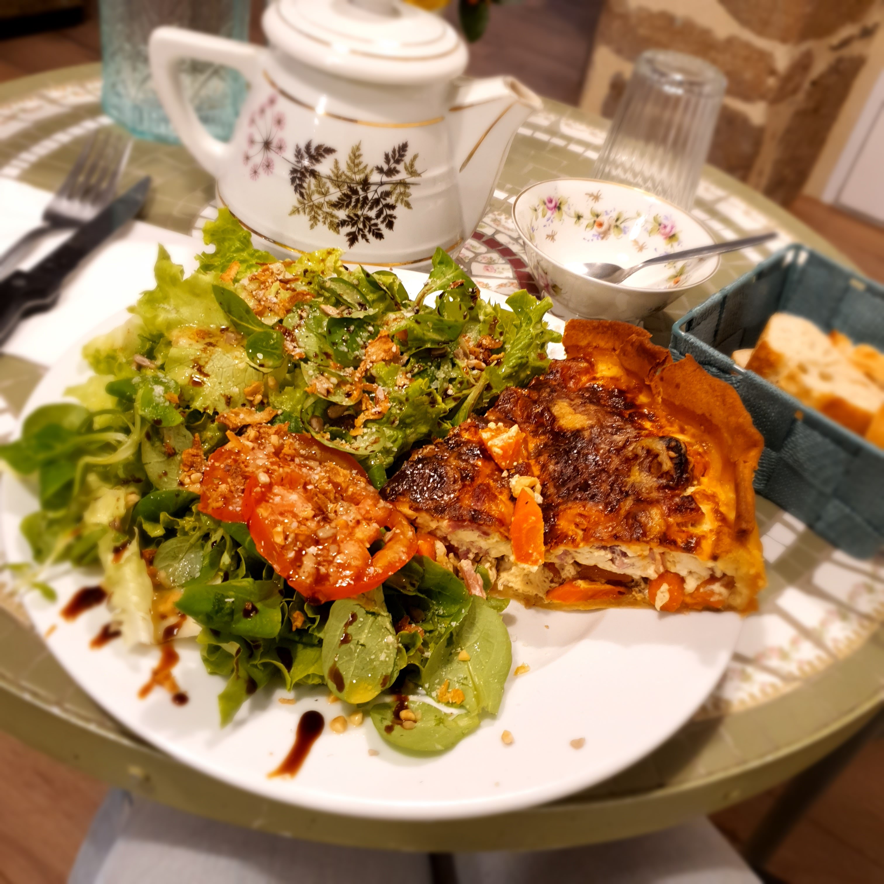Quel accueil sympathique 🥰 Une cuisine comme à la maison avec des tartes (celle poulet aux épices était formidable) très bien assaisonnées ... et des desserts succulents (le cake à la pêche façon tatin est terrible) 💖 Je recommande à fond 😉