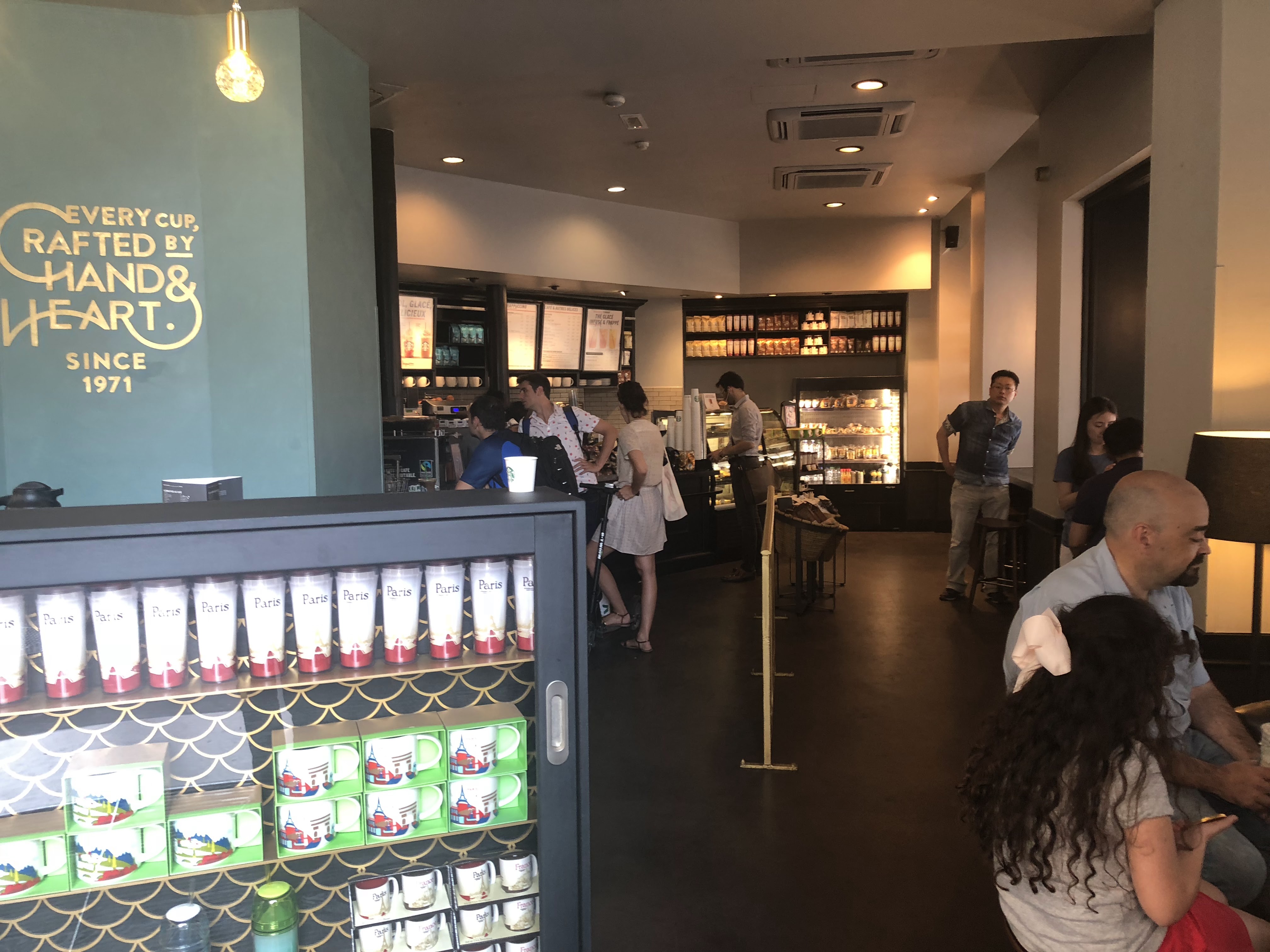c'est la première fois que je découvre cette chaine dont tout le monde parle... et bien c'est bien ce à quoi je m'attendais. Tout est fade, uniformisé, c'est une usine a touriste... nous avons la chance d'avoir en France des bons cafés de quartier. préservons les, soutenons les et fuyons ces coffee shop uniformisés aux mains de grandes multinationales