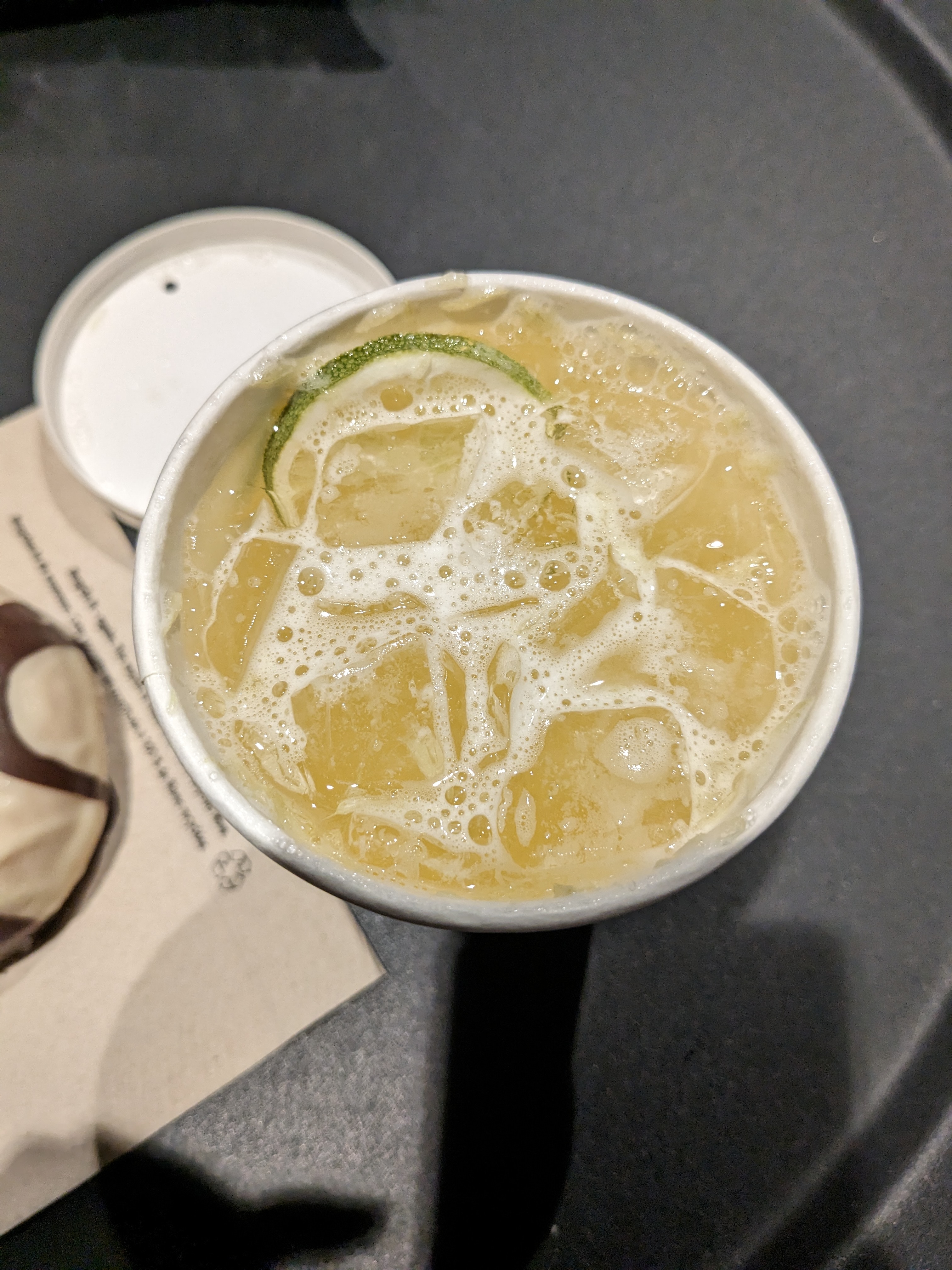 Un matcha grande dont les 3/4 sont remplis de glaçons... Les peu de gorgée que j'ai bu me laissent un goût amer !