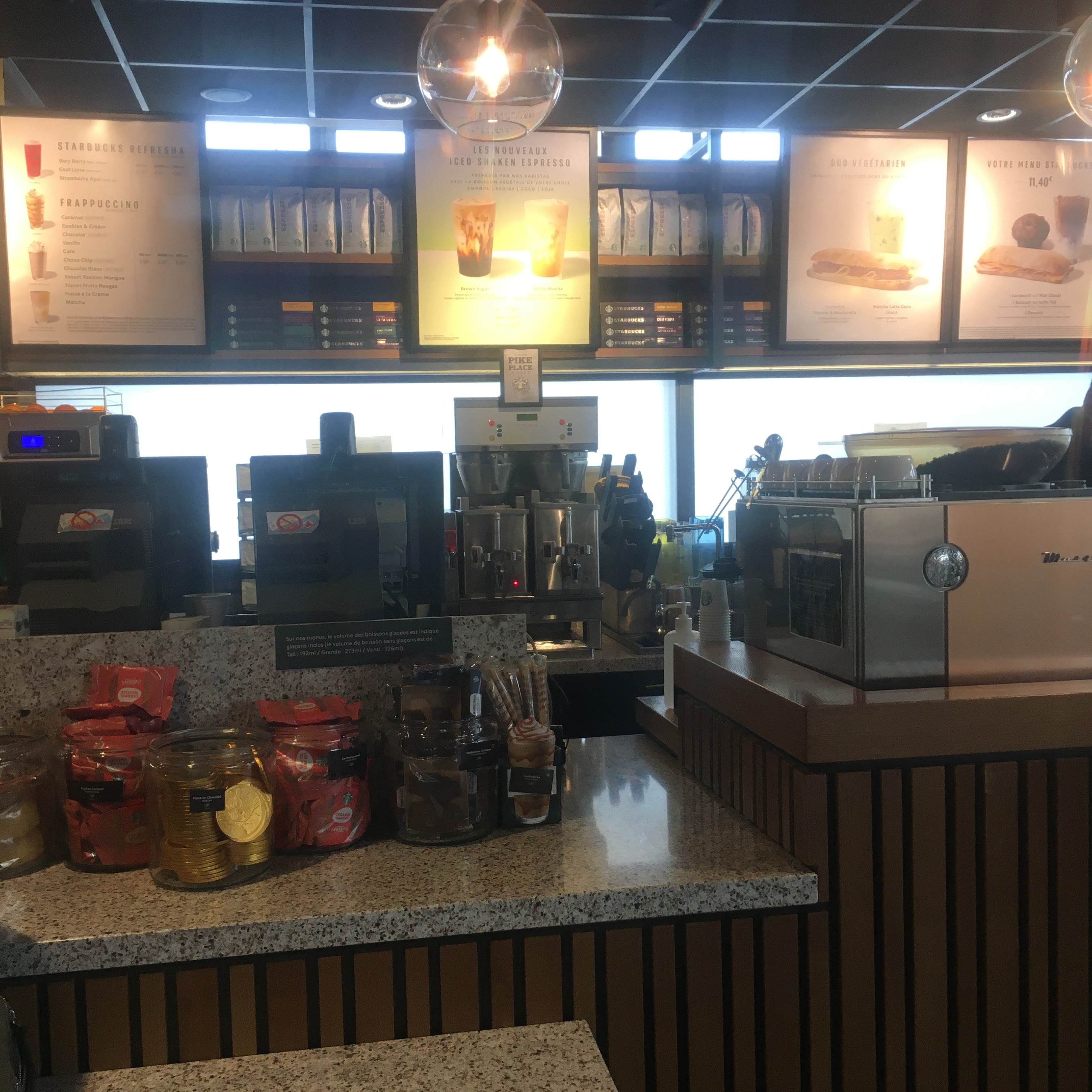 Pour infos ce Starbucks est un starbucks sous licence donc en responsabilite du groupe autogrill. Qui paye ses impôts en france! Merci de vous renseigné avant d emettre des avis erroné